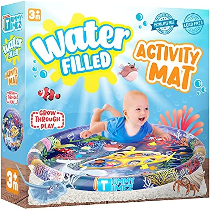 TT TUMMYTIMEZ Premium Tummy Time Water Mat, XL Inflatable Activity Center Promoting Baby Motor and Sensory Development, Grow Through Play Sensory Stimulation Gift for Infants Toddlers Boys Girls