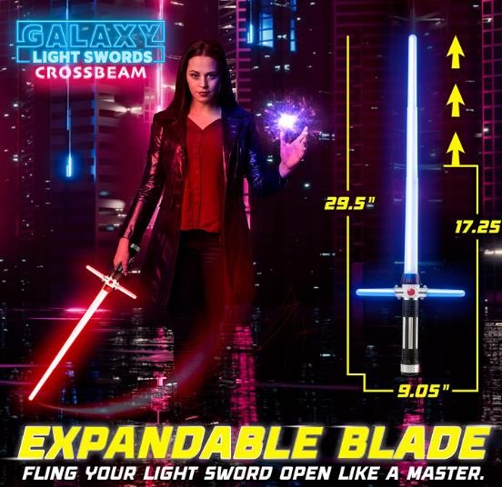 USA Toyz Crossbeam Galaxy Light Up Saber for Kids or Adults - 2-in-1 LED Dual Light Swords Set with FX Sound, 6 Color-Changing LEDs, Motion Sensitive, Retractable, Expandable Light Saber Double-Sided