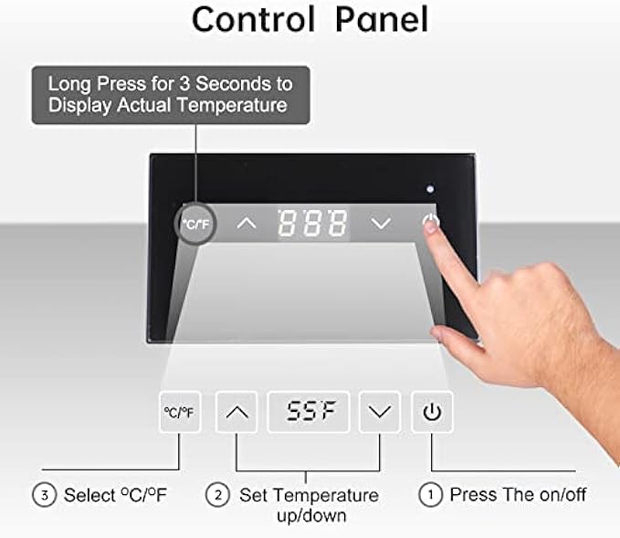 • Touch Screen Temperature Controls: The LED display allows you to view and adjust the temperature easily, the temperature of the wine can be easily controlled between 41℉-64℉(5℃-18℃). With this electric wine bottle cooler, you don't need to worry about the wine's taste due to the temperature change. The chill effect of the wine stays nice and cool throughout the entire party or meal.
